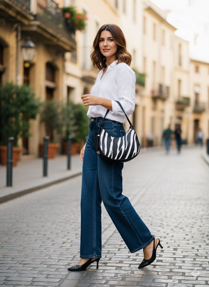 Trendy Moon Bag crafted in premium quality with an adjustable belt. Comes in three chic printed colors for a versatile, everyday look.