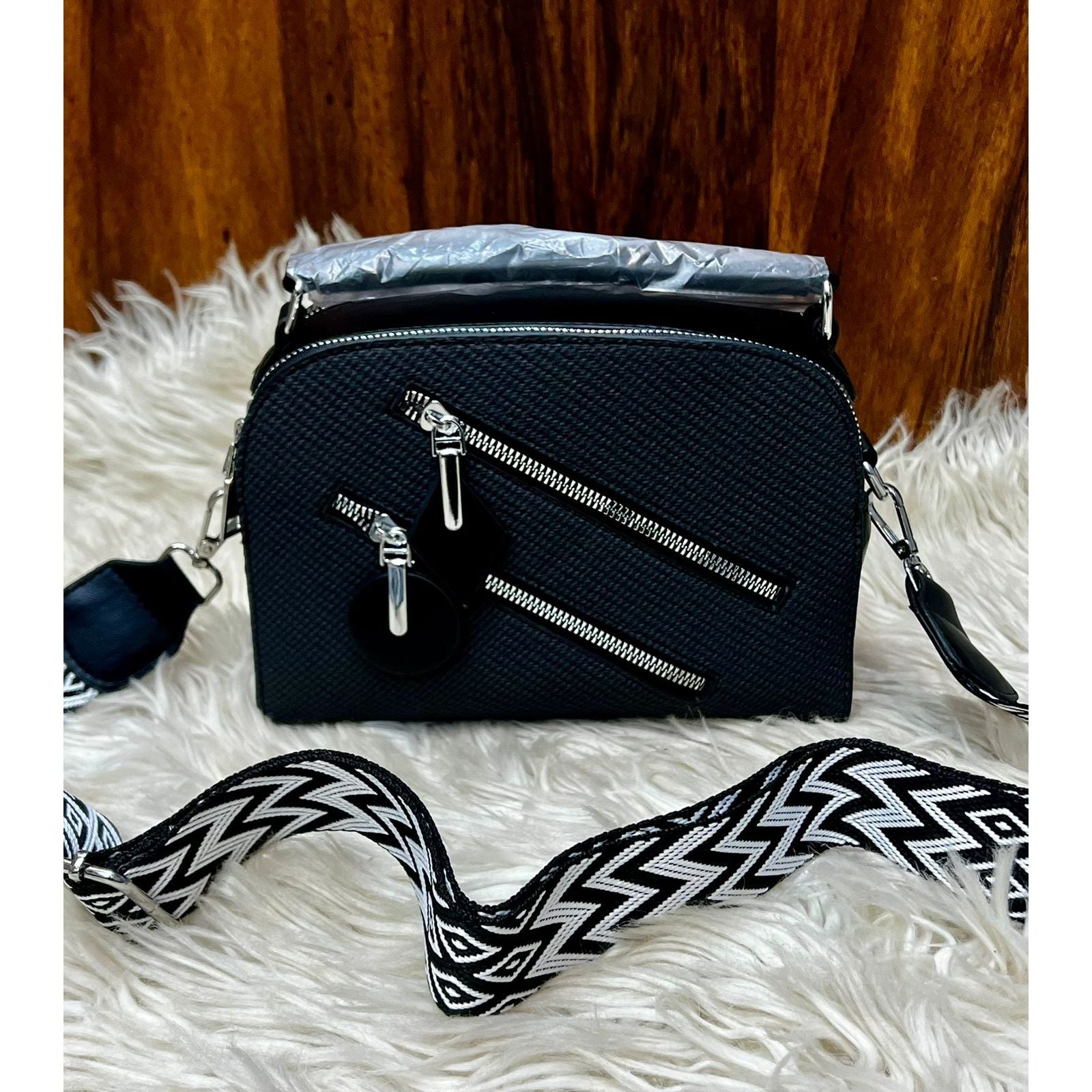 Meet your new favorite everyday bag – the Zippie Luxe. This imported beauty is designed with double zippers for extra storage and style, paired with a bold, printed strap that makes a statement. Crafted from high-quality material for a premium feel, it’s the perfect mix of function and fashion.
